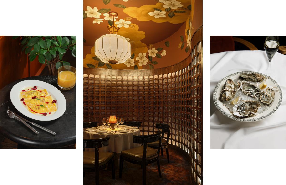 Kaifuso — новый ресторан-клуб Аркадия Новикова на Кузнецком Мосту, вдохновленный классикой Восточной Азии и названный в честь древнего поэтического сборника. За китайский раздел отвечает семейная команда шеф-поваров из Шэньяна. Обязательно закажите говядину с черным перцем, утку по-пекински и димсамы ручной лепки. В японском разделе — большой суши-бар, сашими и горячие блюда из рыбы и морепродуктов (черная треска в мисо, лосось с эдамаме и сычуаньским маслом). Пространство почти на 200 посадок оформило бюро дизайнера Евгении Ужеговой. Стены и потолки расписаны вручную по мотивам китайских шелковых панно — птицами, цветами и орнаментами, вдохновленными традиционной шелкографией. После полуночи Kaifuso переключается в клубный режим: приглушенный свет, плотный саунд и атмосфера приватного бара.