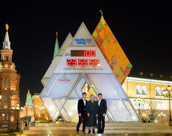 Ровно в 20:14 часы Omega зафиксировали переключение циферблата на отметку 100 дней до даты открытия Игр — 7 февраля 2014 года. Стефан Петер, генеральный директор Swatch Group Rus, прокомментировал: «Никто не знает, представители каких стран поднимутся на олимпийский пьедестал, но одно могу сказать точно: Omega измерит и зафиксирует с предельной точностью каждую секунду, которая привела их к победе». «Мы все ждем предстоящие Олимпийские зимние игры 2014 года в Сочи как праздник. Я испытываю огромную гордость за нашу страну», — сказала Лидия Скобликова.