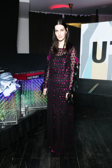 В тот же вечер журнал Harper’s Bazaar ART совместно с модным домом Elie Saab провел арт-вечеринку по случаю выхода нового весенне-летнего номера — ее устроили в вышеупомянутом St.Regis Moscow, куда я и поспешила после выставки Christie’s. В основу концепции мероприятия легла одна из главных тем номера — «Новая утопия». Изюминкой вечеринки стал перформанс, подготовленный студией Radugadesign и коллективом FarFor: как только танцоры вступили в зал, все засияло неоновым ультрафиолетовым светом под аккомпанемент пианиста Николы Мельникова. Все их действия тут же отражались на экранах: с помощью искажений, оптических иллюзий и прочих чудес генеративной графики. Здесь нашлось место не только новым технологиям и искусству, но и моде: специальным гостем вечеринки стал дизайнер Эли Сааб.