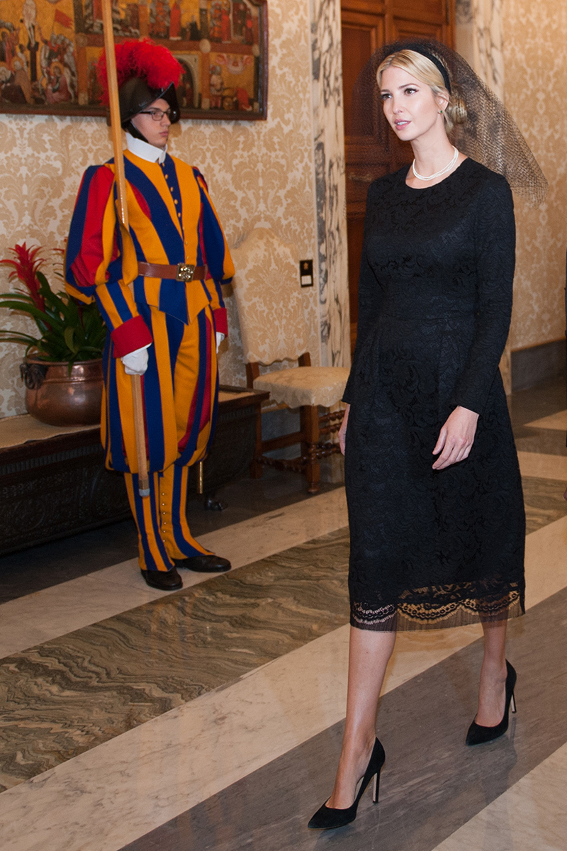 Зато покрыть голову Меланья Трамп решила во время визита в Ватикан. На аудиенцию к папе Римскому Франциску первая леди Америки пришла во всем черном и в вуали, сообщал BBC. Позднее дизайнер Стефано Габбана на своей странице в Instagram поблагодарил первую леди за выбор платья его модного дома.