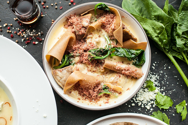 Возможно, самый экспериментальный в гастрономическо-творческом плане ресторан холдинга Maison Dellos отличается еще и самым молодым шеф-поваром — прошлой осенью главное место на кухне занял 27-летний Андрей Красов, хорошо знакомый многим любителям искусства есть и вкусно, и красиво по санкт-петербургскому «Винному шкафу».