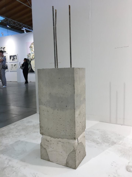 Оммаж другому классику – Альберто Джакометти – бросался в глаза на стенде галереи Balzer Projects, приехавшей в Вену из Базеля. Весь он был отдан художнику Павлу Ферусу. Он родился в Польше, но позже вместе с семьей переехал в Швейцарию, где выучился на резчика по камню. В своих ироничных работах он соединяет абстрактное с фигуративным, используя в качестве материалов не только гипс или бетон, но также, к примеру, банки с солеными огурцами. Выходец из Восточной Европы, он размышляет над разницей менталитетов, ни на минуту не забывая о юморе. Так в его искусстве появляются реди-мейды, частью которых становятся не только уже названные огурцы, но водка и сигареты, помноженные на гипсовую голову австрийского художника Франца Веста.