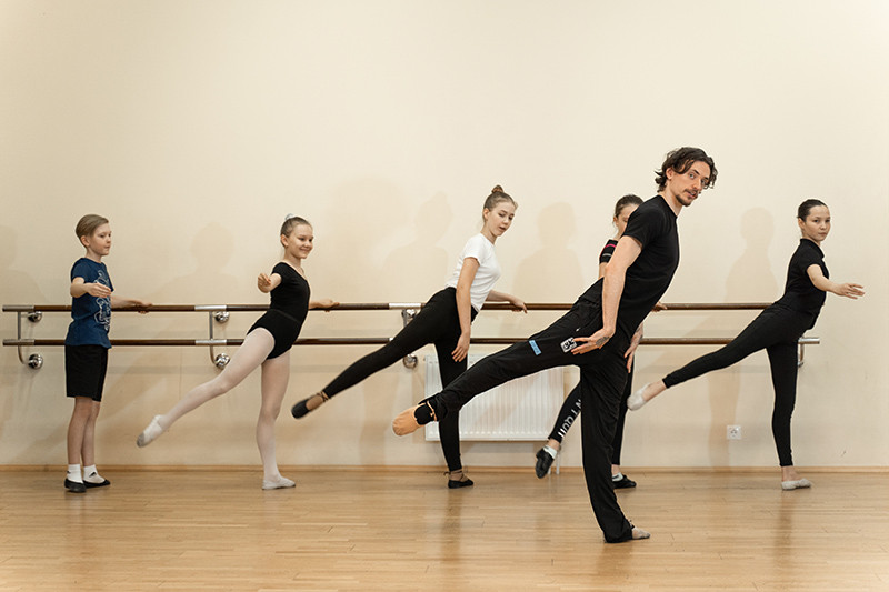 Плие, гран-плие, батман тандю, пор де бра, — разминка идет своим чередом, один балетный термин сменяется другим, а за происходящим вместе с операторами тобольского телеканала наблюдает преподавательница балетной студии, одобрительно кивающая на словах Полунина о том, что акценты должны быть острыми, а сосредоточенности танцор не имеет права терять ни на секунду.