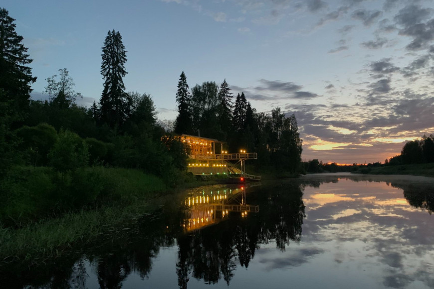 Гости могут приготовить шашлыки и попариться в бане. На берегу реки стоят две бани: одна большая, вторая поменьше. После можно обтереться снегом, а затем согреться травяным чаем.