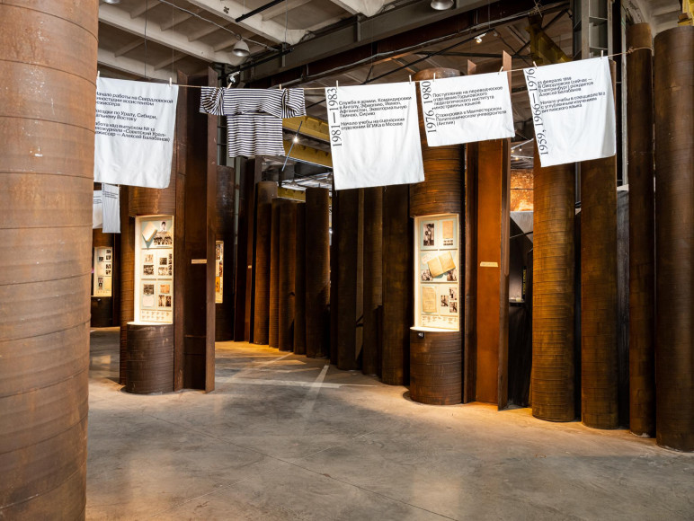 Будут и главы о работе на Свердловской киностудии, первых коротких метрах, дружбе со свердловской рок-сценой в целом и Вячеславом Бутусовым в частности. Из его же песни Алексей почерпнет название первой своей короткометражки «Раньше было другое время», а к моменту «рождения» одержимого Бутусовым Данилы Багрова музыкант появится в кадре и за ним не раз. Друзья со студенческих пор, Балабанов и Бутусов, сплелись в жизни и кино так же, как позже сплетутся Балабанов и Бодров. «Тот самый» свитер из «Брата» здесь тоже появится, как и полыхающее огнем время, зной и одновременный холод которого так хорошо заметны в каждом фильме режиссера. Его работы окажутся остановками на пути — с максимальным погружением не только в антураж сюжета, но и в его суть. Сценография играет в этом проекте отдельную роль, как и само место: «Севкабель Порт» находится на Васильевском острове, где Алексей Балабанов ездил на велосипеде (про это будет отдельная история, рассказанная Сергеем Сельяновым), где он жил и где похоронен. Сегодня сюда, к берегу Финского залива, стремятся люди совсем молодые, современники другой поры и другого века. И в этой связи выбранная форма выставки-приключения с возможностью залезть, сесть, приблизиться и потрогать кажется подходом обоснованным и соразмерным масштабу — и проекта, и главного его героя. Куратор и автор идеи Татьяна Гетман объединилась со студией СТВ и Сергеем Сельяновым, а также с художником-постановщиком Агнией Стерлиговой из бюро Planet9. Прямое участие в подготовке экспозиции семьи Алексея Балабанова говорит, в свою очередь, о том, что история эта не только кинематографическая, но и фамильная. Впрочем, едва ли стоит отделять одно от другого, учитывая тот факт, что Надежда Васильева работала с мужем на всех его фильмах как художник.