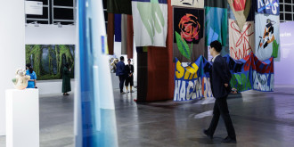 Петербургская Anna Nova Gallery предлагает сместить зрительскую оптику с человека на животных, растения и природные ландшафты. Здесь есть каменные планеты с бронзовыми кольцами Дениса Патракеева и бюсты загадочных существ от Ильи Федотова-Федорова. Большую часть стенда MYTH, еще одной галереи из Петербурга, заняла масштабная инсталляция Егора Федоричева. Художник покрыл две стены черной плиткой с абстрактными узорами. Два стенда Aina Pinsky Gallery эффектно сочетают работы современных художников старшего поколения вроде Игоря Шелковского с произведениями молодых авторов, включая Евгения Музалевского.