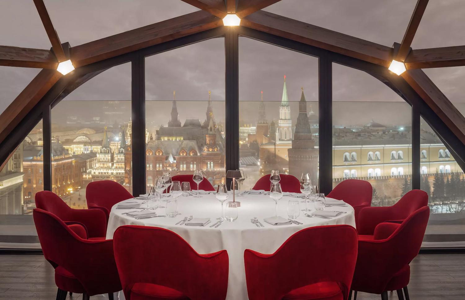 Празднование Нового года состоится в ресторане «Консерватория» на десятом этаже. В меню — безлимитное коллекционное шампанское, шведский стол с большим выбором блюд (повара будут готовить горячее прямо в зале). На террасе ресторана с панорамным видом на Большой театр и Кремль расположится ледяной бар, выступят диджеи и музыканты. Для детей предусмотрен отдельный зал с анимацией, буфетом и подарками.