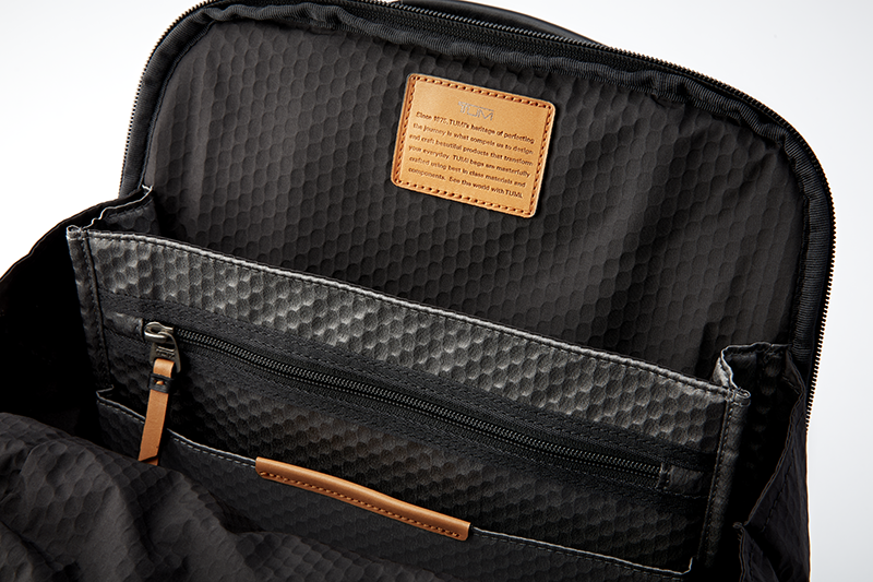 Чтобы найти легкий и прочный материал для создания таких же легких и прочных рюкзаков, специалисты Tumi потратили несколько лет на исследования вторичного сырья. В результате остановились на нейлоне. Доля вторичного сырья составила 70%. Для изготовления внешней части вещей был использован переработанный нейлон, а для внутренней части и внешних деталей — переработанные пластиковые бутылки.