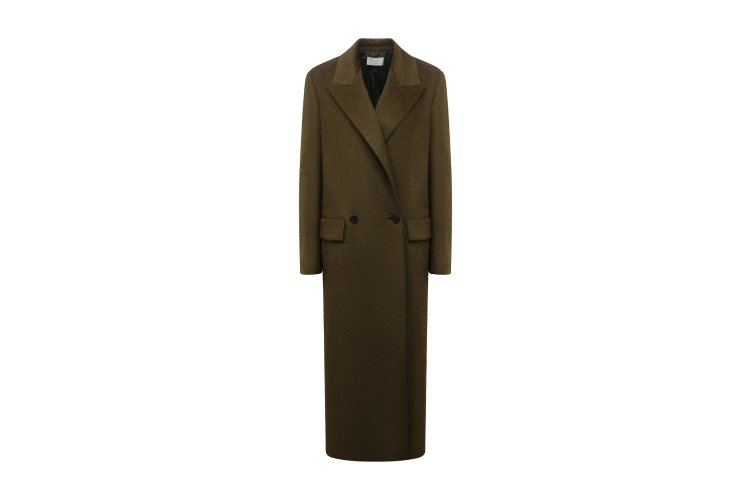 Длинное шерстяное пальто The Row оттенка хаки — беспроигрышный вариант на осень. Здесь можно поиграть с фактурами: заменить клетчатую юбку на легкую шелковую и добавить объемный свитер крупной вязки.