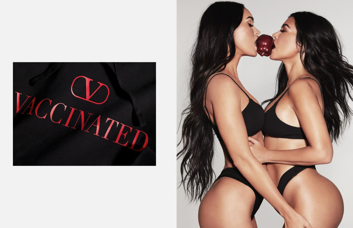 Valentino представил толстовку с принтом «Vaccinated», стилизованном под логотип модного дома, в которой креативный директор Пьерпаоло Пиччоли сфотографировался для Instagram в конце августа. Это результат сотрудничества с американской маркой Cloney, которая переосмысливает символику известных компаний в ироничном ключе. При создании актуального худи Valentino также работал с ЮНИСЕФ: все средства от продажи толстовки будут направлены на поддержку проекта COVAX, который обеспечивает равный доступ к вакцине от COVID-19 в нуждающихся странах.