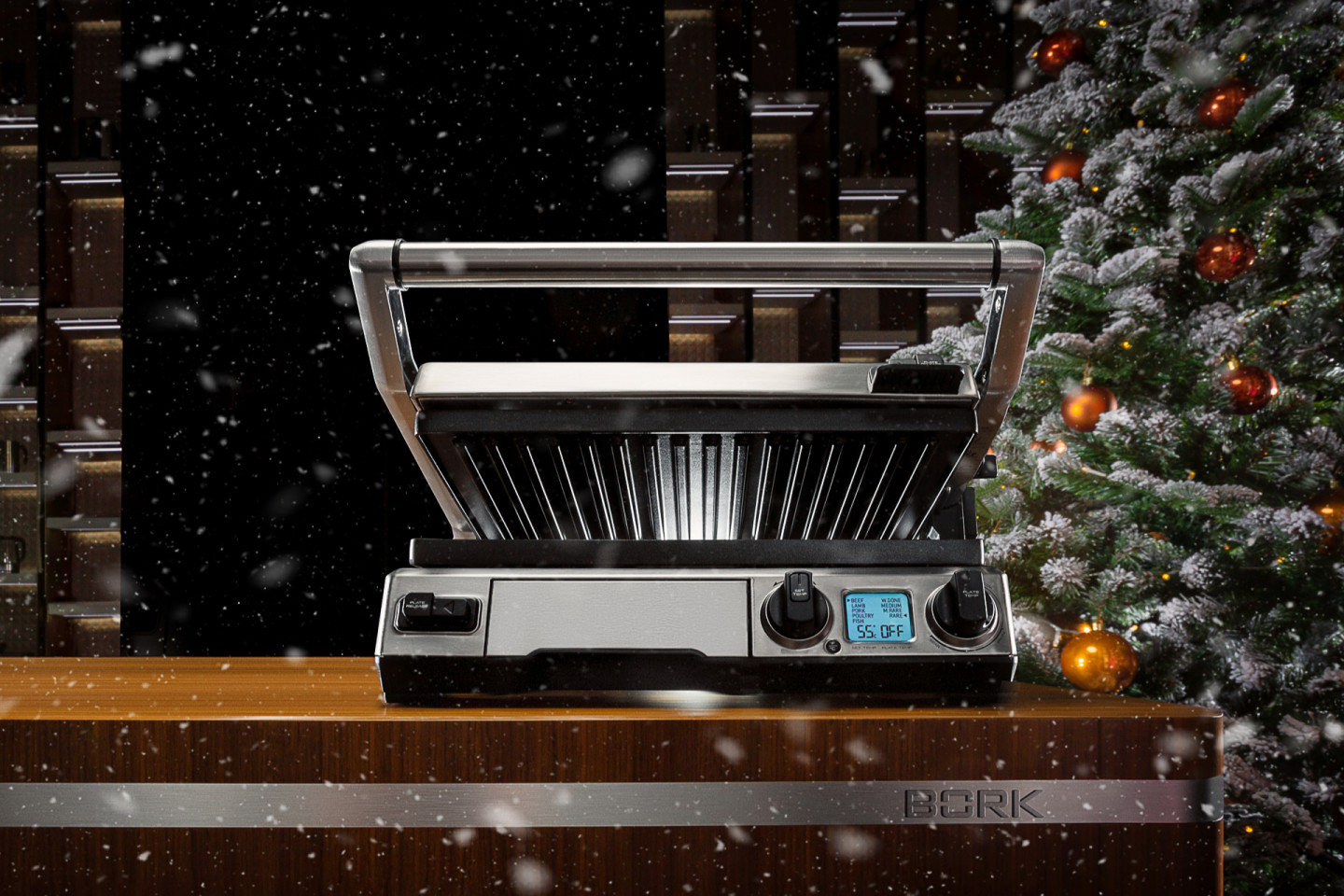Гриль по-разному готовит каждый из пяти видов мяса — говядину, баранину, свинину, дичь, рыбу. Вариантов прожарки четыре: Rare, Medium Rare, Medium, Well Done. Чтобы быть уверенным в результате, в момент приготовления можно использовать встроенный термощуп, он замеряет температуру от +45˚С до +75˚C внутри куска, не нарушая его целостности. При этом за счет изменения угла наклона поверхностей гриля можно готовить диетические блюда без жира или продукты в собственном соку.