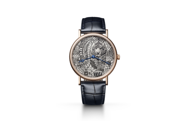 К китайскому новому году Breguet приготовил часы Classique 7145 с невероятно искусной гравировкой по золотому циферблату в корпусе диаметром 40 мм. На барельеф с изображением тигра наносится чернение, придающее объем. На создание одного циферблата уходит неделя.