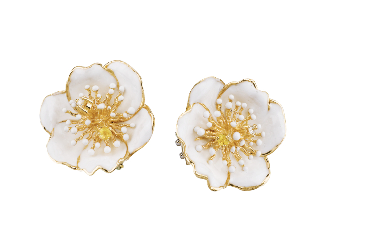Добиться предельного сходства и максимально передать краски природы помогает эмаль, один из фирменных приемов Roberto Bravo. Искусство это трудоемкое: на золотую поверхность каждого фрагмента тонкой кисточкой наносят специальным образом приготовленный минеральный состав, каждый слой последовательно обжигается в печи при температуре до 800 градусов. Сложность еще и в том, что во время обжига эмаль ведет себя непредсказуемо: может треснуть или изменить цвет. Но если ее удается приручить, готовые украшения получатся яркими и подарят миру много радостных красок.