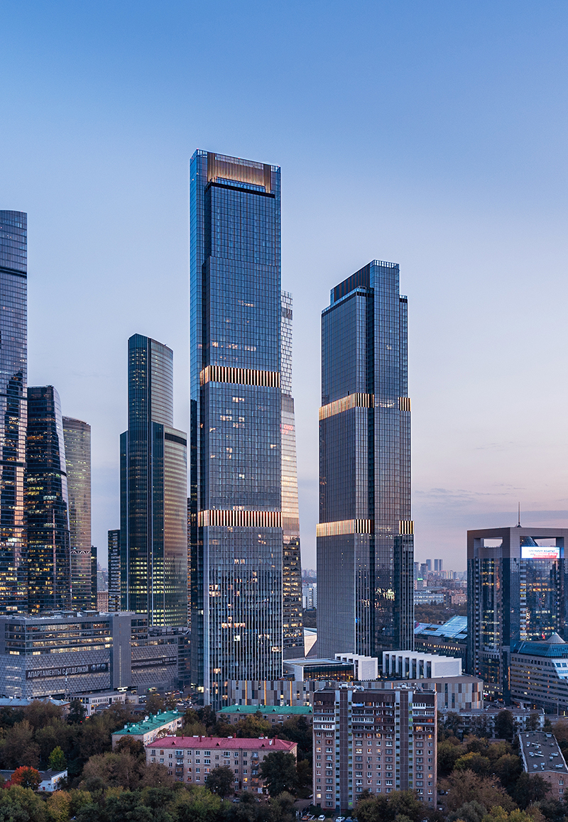 Разрабатывая общую концепцию, архитекторы вдохновлялись классическими нью-йоркскими небоскребами в стиле ар-деко, в облике которых легкость стекла и массивность натурального камня дополняют друг друга. В результате стеклянные фасады башен украшены декором в виде пилонов из светлого камня. Они подчеркивают монументальность здания и создают ощущение солидного каменного дома, который будет стоять века. При проектировании и строительстве комплекса компания ориентировалась на требования, предъявляемые к «экологически чистым зданиям». Для таких сооружений характерно меньшее потребление ресурсов, в том числе экономия энергии и воды. Кроме того, большое внимание уделяется созданию чистой окружающей среды, комфорту и здоровью жителей: к примеру, свежий воздух подается в соответствии со стандартом ASHRAE и контролируется датчиками CO2.