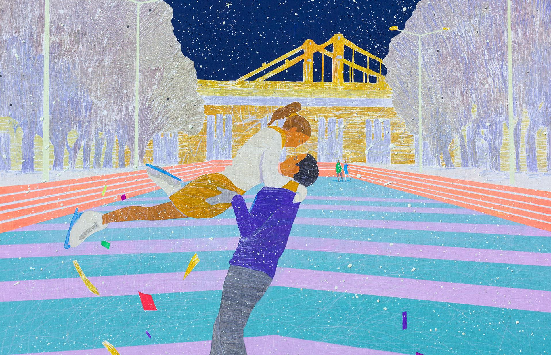 Кирилл Кипятков — один из наиболее заметных представителей нового поколения российских художников. В своих работах он исследует силу человеческого тела, энергию движения и сочетает фигуративность с абстракцией. Для проекта Vesper автор создал произведение, продолжающее его серию «Цвета спорта» — масштабный цикл, который уже демонстрировался на выставках в Москве, Санкт-Петербурге, Сочи, Гонконге, Корее и Базеле. На картине изображена пара фигуристов — это отсылка к новому зимнему проекту девелопера.